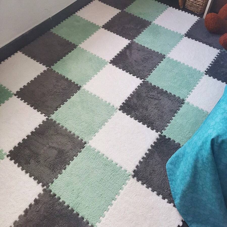 6/18片灰色/薄荷綠色/白色12*12英寸臥室床邊地毯,泡沫拼裝地墊,三色運動墊,塌塔米窗口墊,帶邊緣條,可裁剪,可清洗