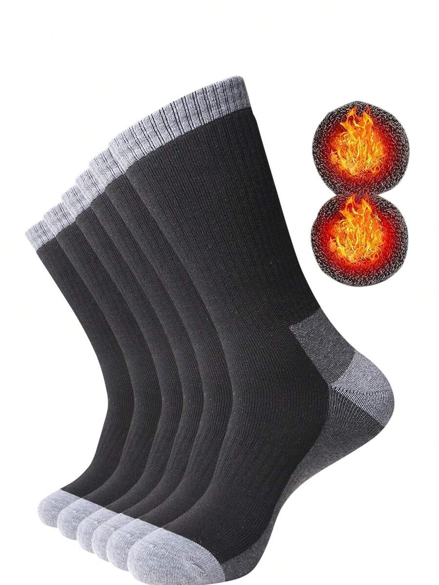 6 双超值男士厚款徒步袜 - 柔软温暖舒适冬季中筒袜日常穿着徒步、骑行和跑步