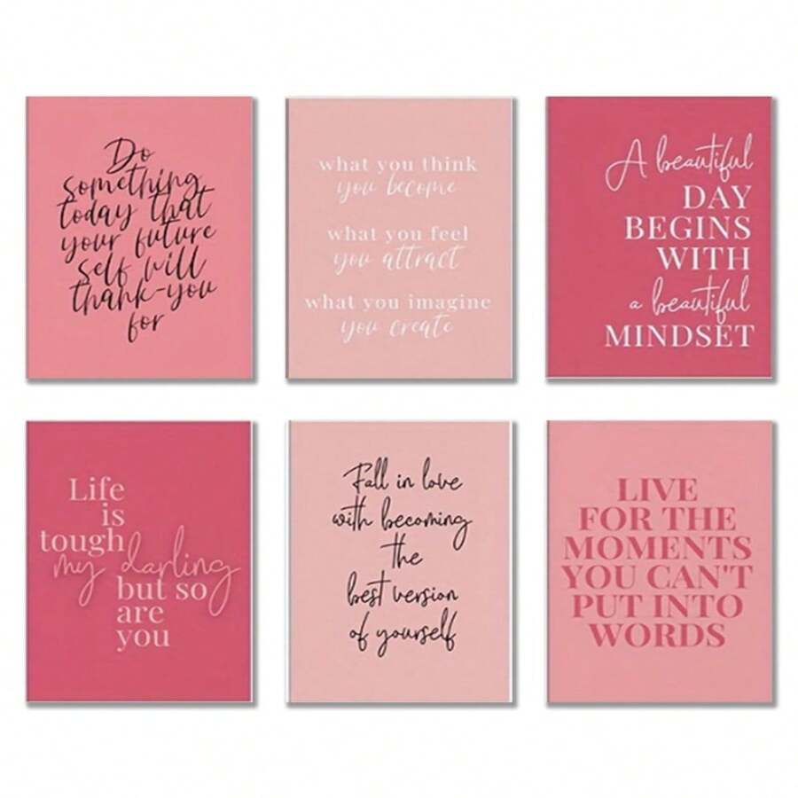 6 件无框励志名言墙画套装,粉色和淡粉色绘画印刷品,现代装饰海报,适用于家庭办公室、卧室、客厅、浴室、餐厅 8*10 英寸