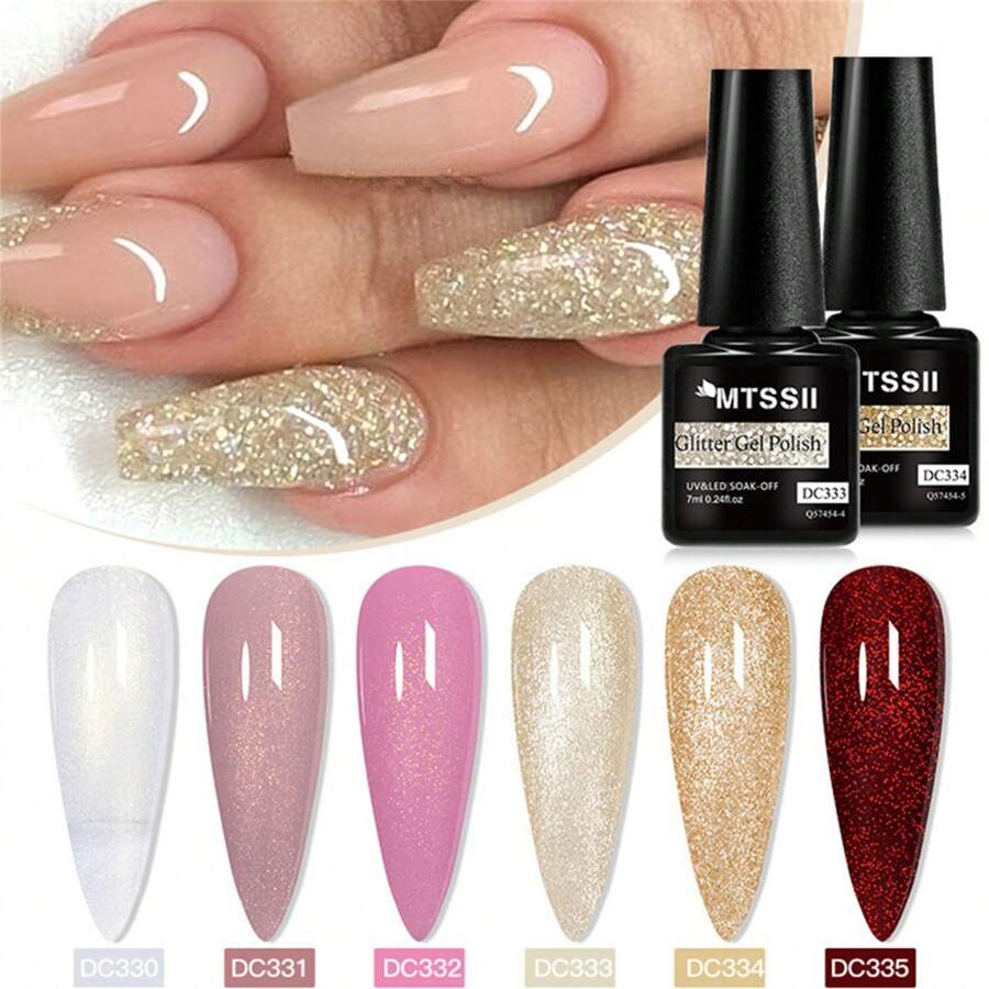 6件套闪粉凝胶指甲油套装,粉色闪粉凝胶指甲油套装,7毫升Sumner粉红色红色指甲油,极光变色龙锈棕色金箔凝胶指甲油套装,半永久性可卸甲油胶,UV/LED凝胶指甲油美甲套装,美甲用品,DIY居家美甲沙龙,女士礼物
