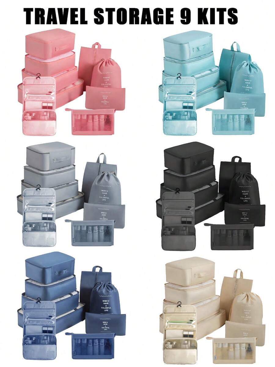 7/9件套/1 旅行收纳袋,旅行配件旅行必需品沙滩行李箱手提箱化妆包旅行包收纳袋行李套装沙滩包手提包大学必需品