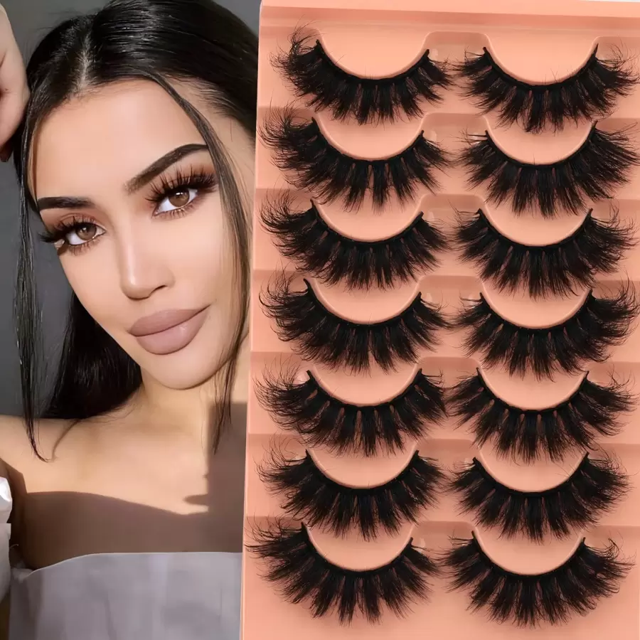 7对仿貂毛假睫毛,蓬松柔软,18毫米,浓密自然,打造猫眼妆效,多包装