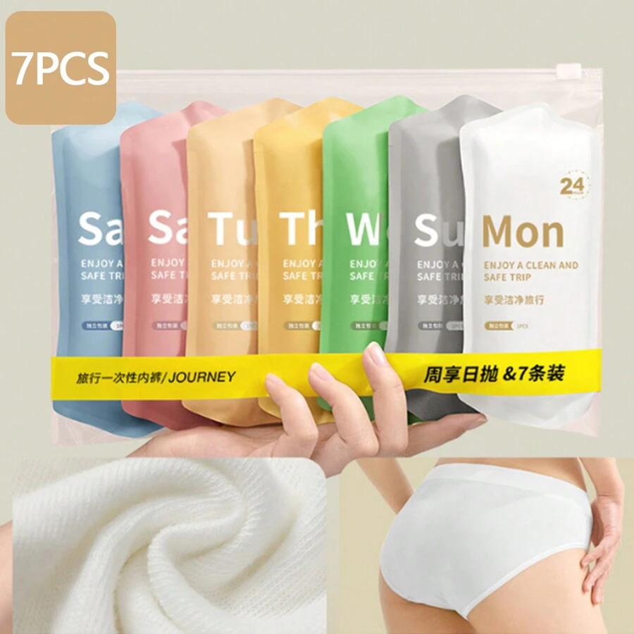 7 条装旅行一次性内裤独立包装女性用品,孕妇内裤,月子无菌免洗旅行短裤,女士日常一次性内裤,一包七条旅行必需品健身学校用品节日露营度假必需品度假配件