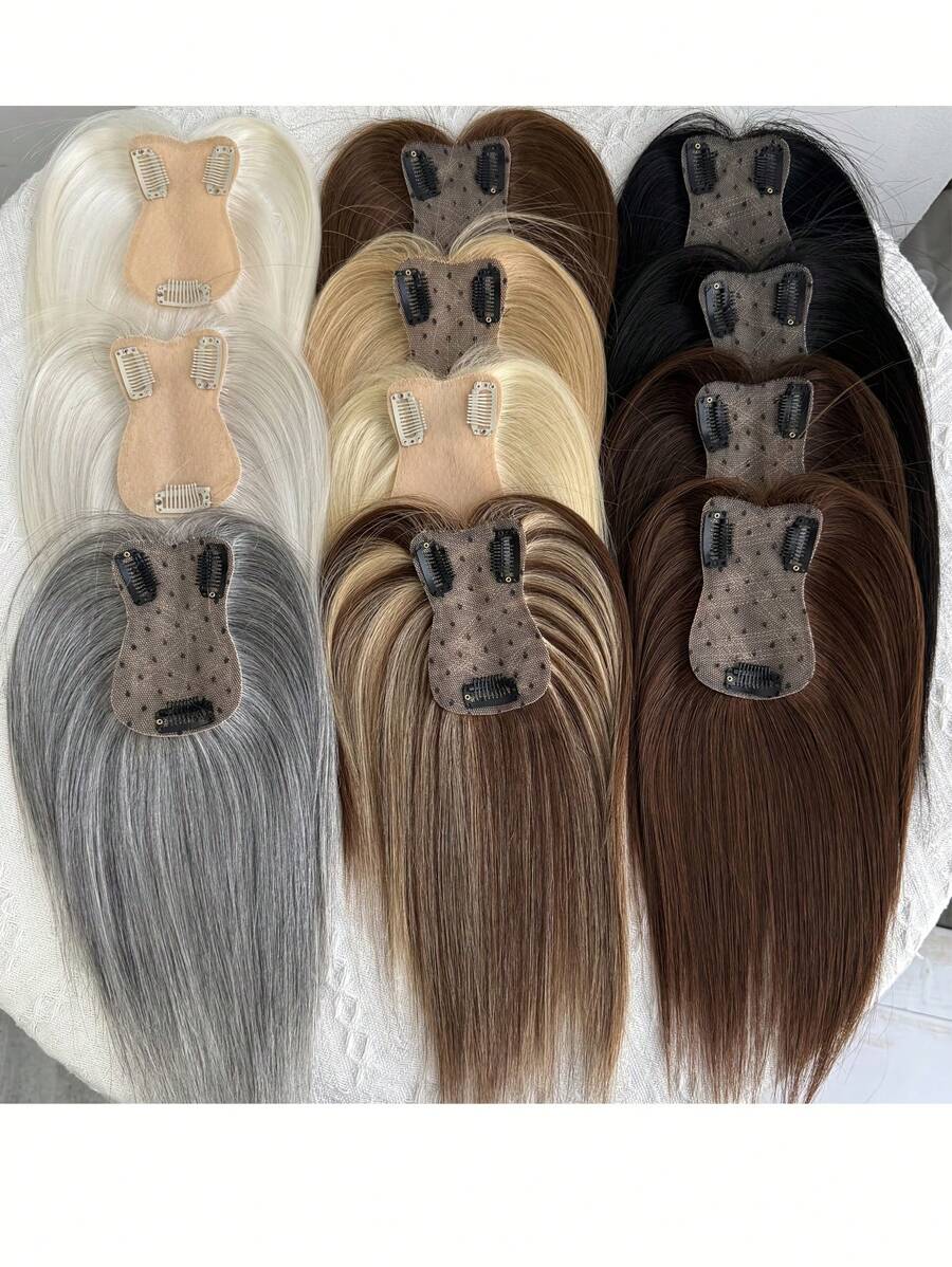 7x11厘米女士真人发夹式侧刘海直发接发片,优雅款式,多种颜色可选,增加稀疏头发的蓬松度和长度,夹式固定,逼真头皮效果