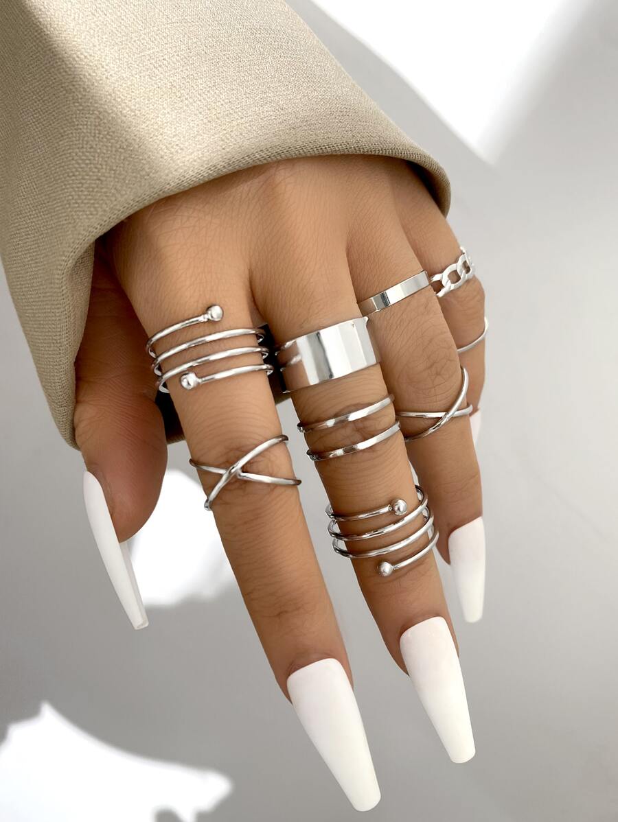17KM 9 件时尚简约金属几何可叠戴戒指套装,适合女士、情侣、男女通用、度假、约会、日常、派对、婚礼、生日礼物,适合送给妈妈、朋友、女朋友的配套礼物