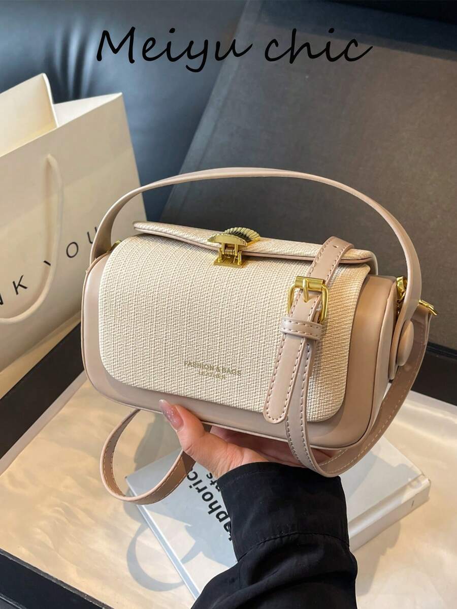 这款时尚经典的多功能手提包/单肩包,采用拼接装饰设计,饰以字母和金属配件,是一款高端多功能小盒子造型手提包,简约优雅,适合旅行、购物、通勤和各种户外场合。