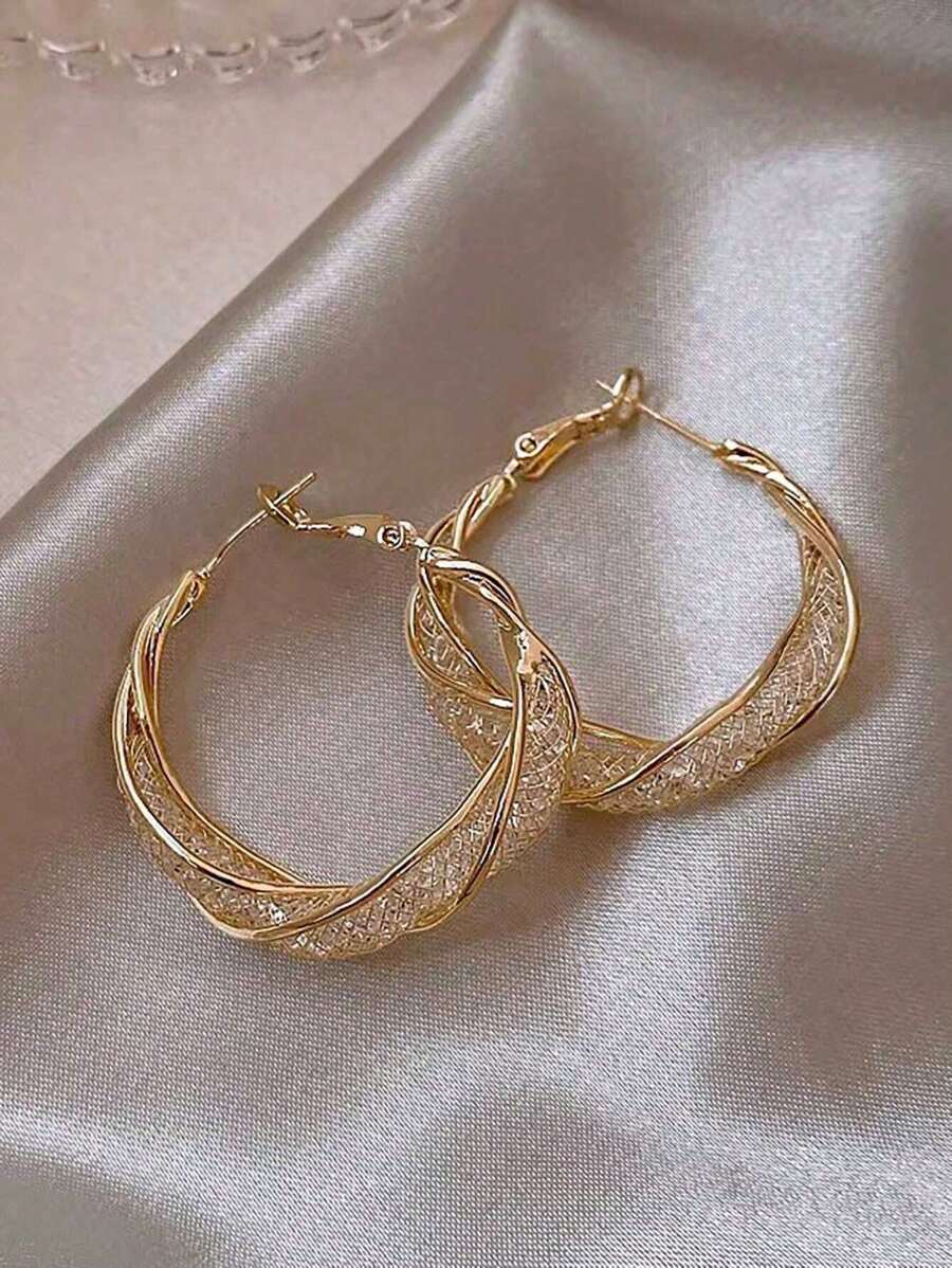 一对独特的金色网状水晶耳环适合女性在音乐节、日常活动、海滩派对、宴会和其他场所佩戴