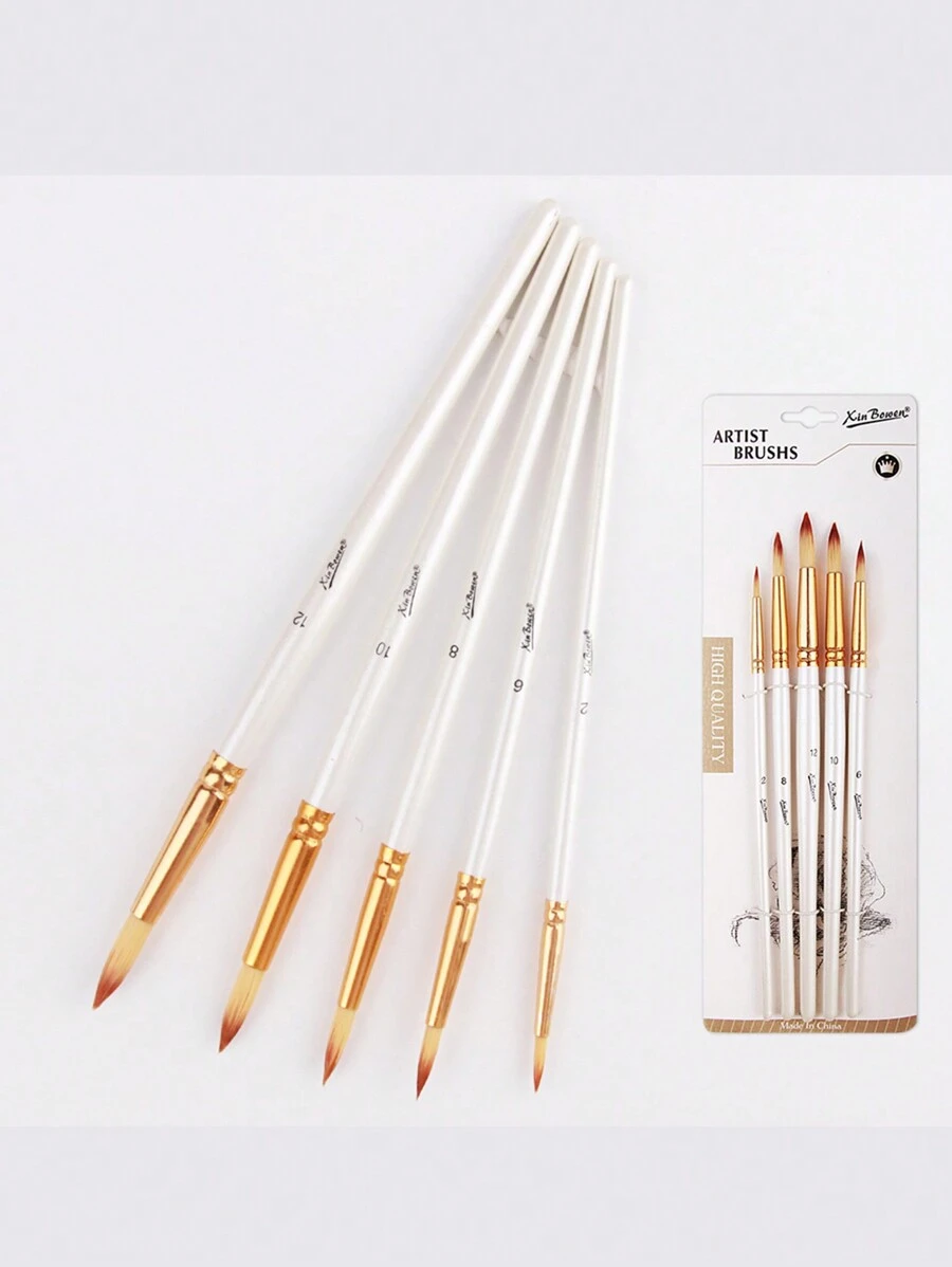 5入組長椭圓形畫筆套裝,專為兒童、diy愛好者、學生設計,適用於丙烯、油漆刷、水彩、膠彩、美術學生筆、描邊筆、毛筆