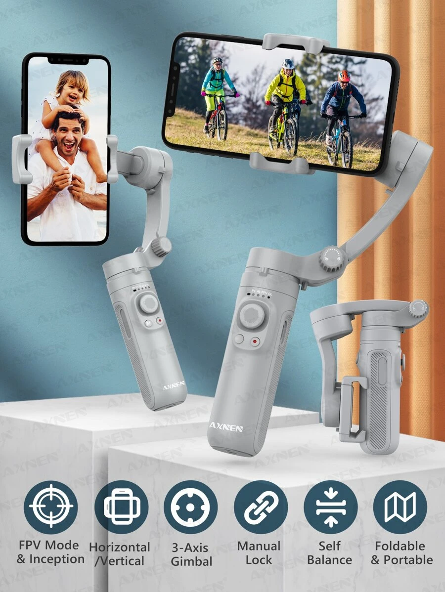 AXNEN 三轴可折叠智能手机手持云台稳定器,适用于 Vlog 视频录制