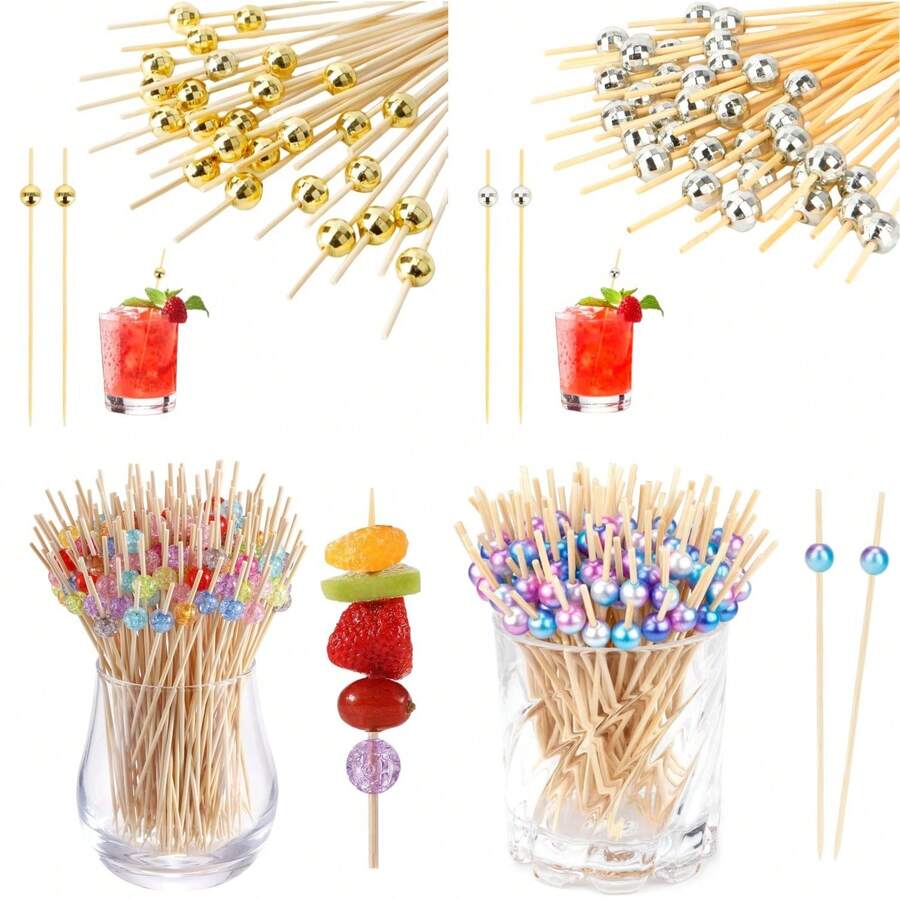 100/50/20 件鸡尾酒签,4.7 英寸竹制鸡尾酒装饰棒,适用于甜点、蛋糕、三明治、串烧、寿司,适用于生日、婚礼、毕业酒会、户外海滩泳池派对、夏季狂欢节和日常家居使用(多种颜色和尺寸可供选择)