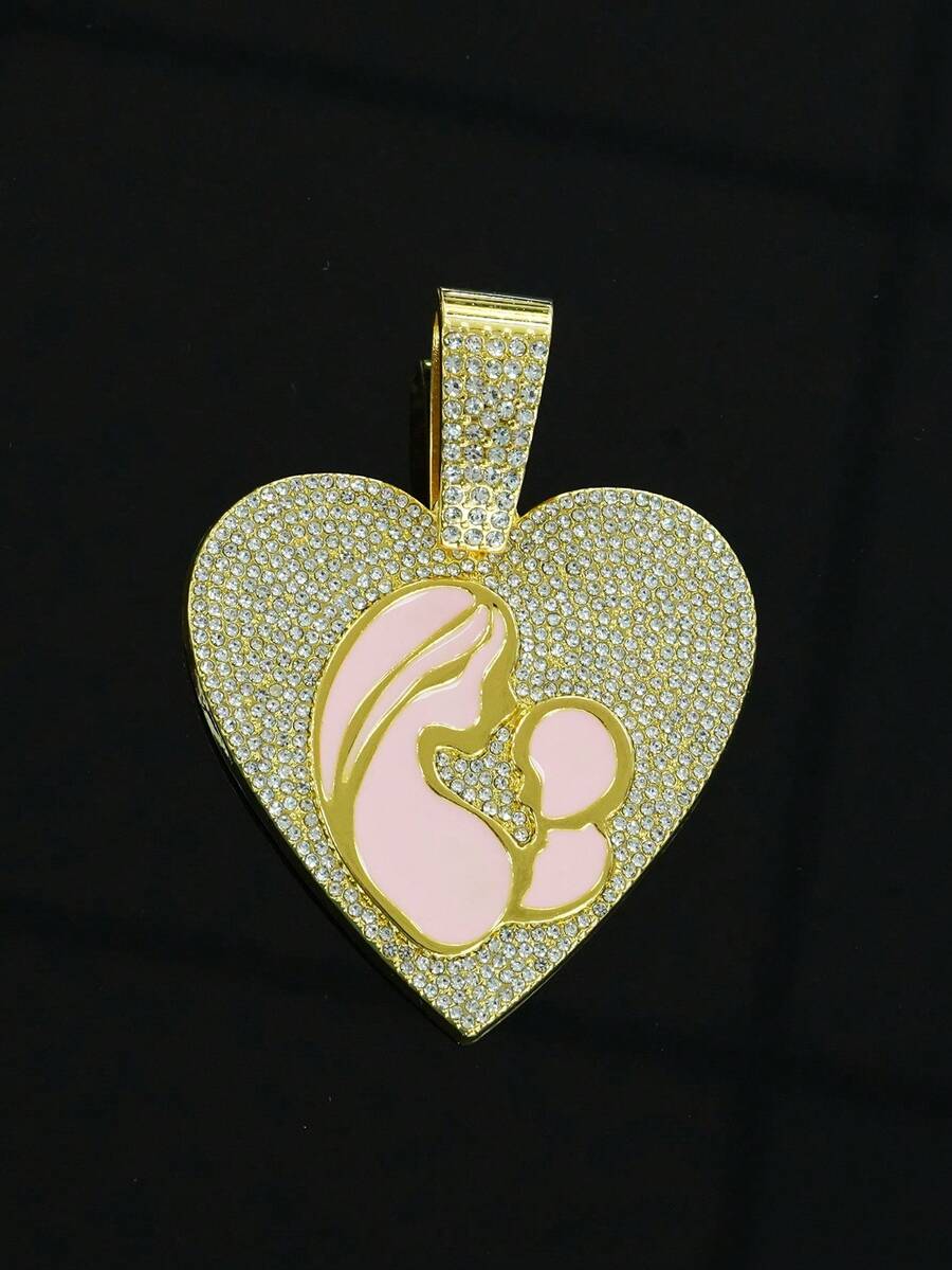 1 件全水钻粉色滴油心形吊坠,代表母爱,适合日常佩戴