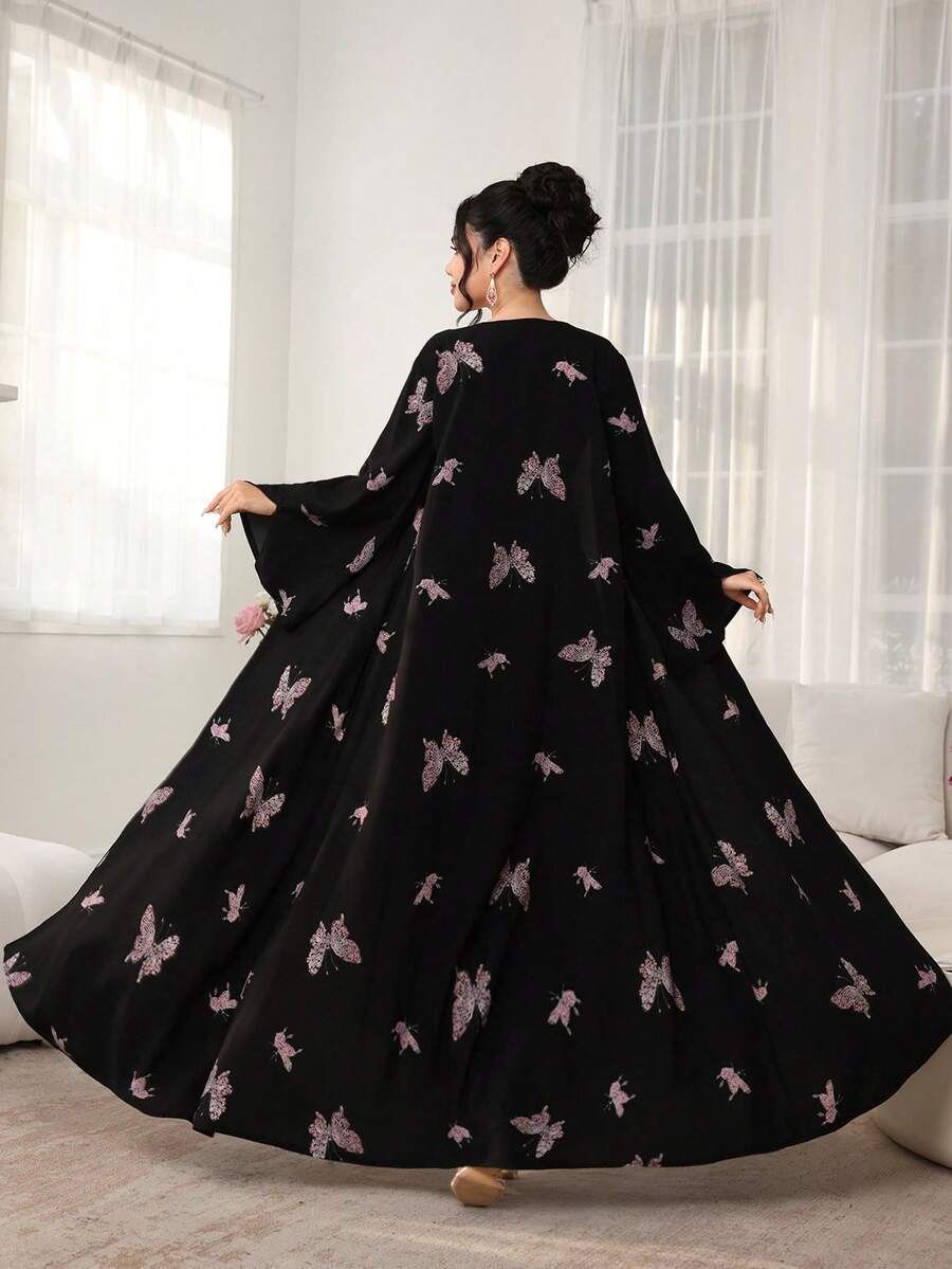 Al Najma 浪漫蝴蝶印花开襟喇叭袖连衣裙,春夏款