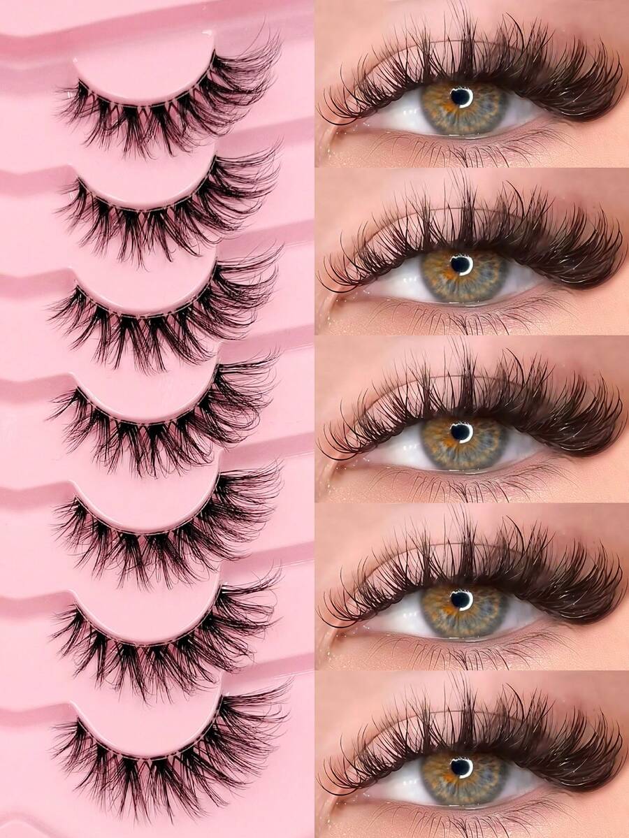 Asiteo 7对蓬松猫眼假睫毛,自然交叉睫毛,透明带仿貂毛睫毛,浓密眼尾,纤长柔软卷翘睫毛