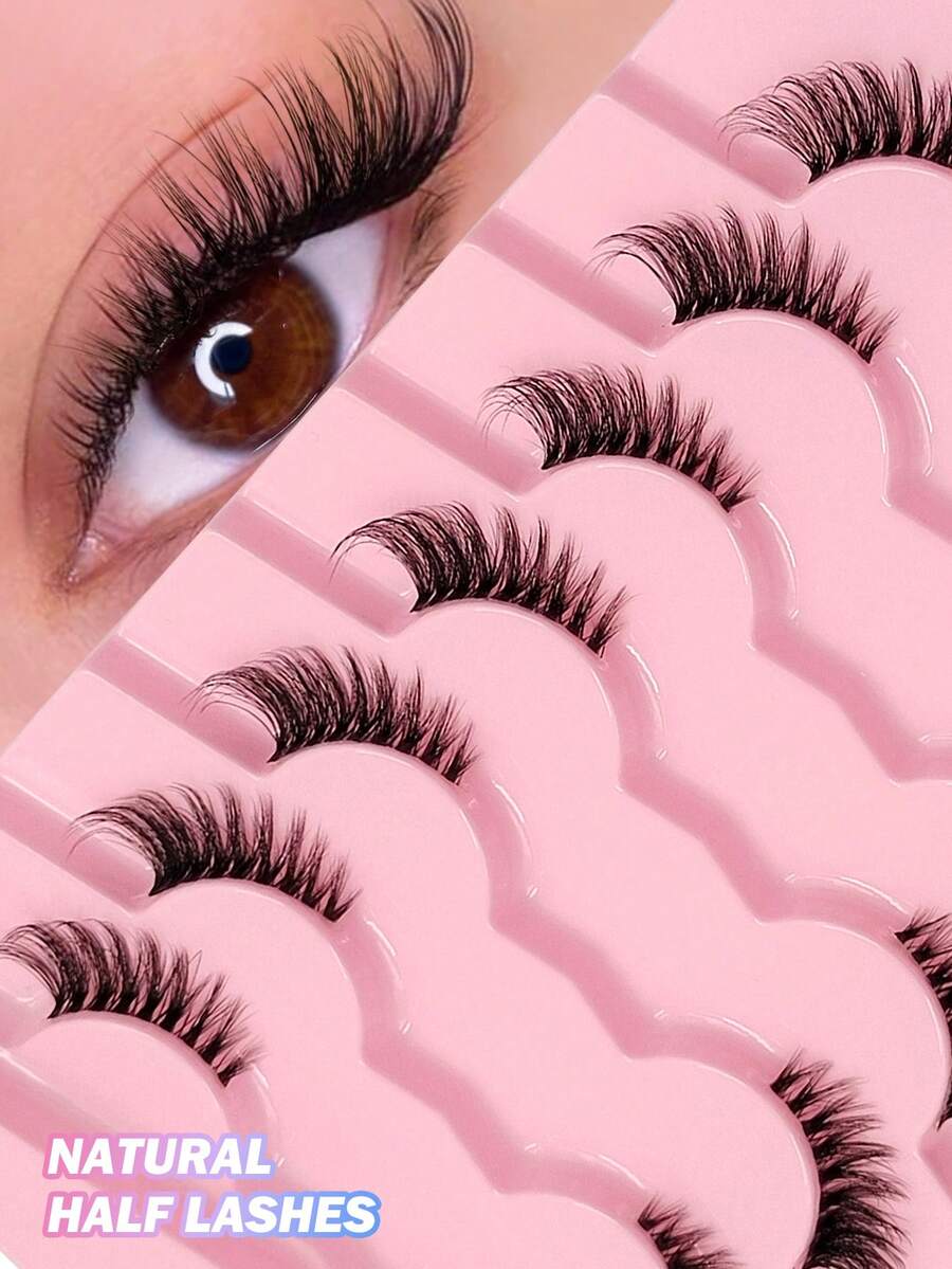 Asiteo 7对半条假睫毛,自然猫眼加长假睫毛,纤细仿貂毛条状假睫毛,适合日常妆容