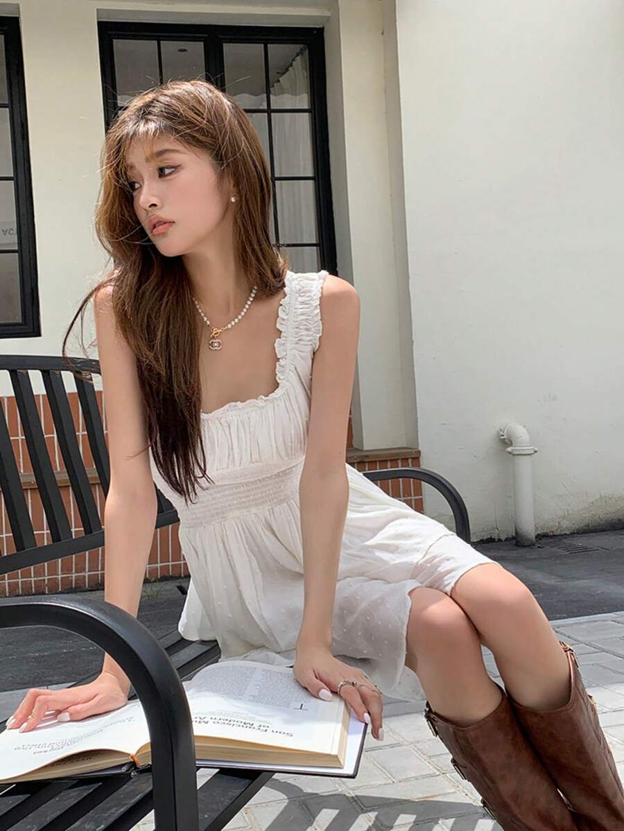 不对称剪裁柔软荷叶边蛋糕连衣裙