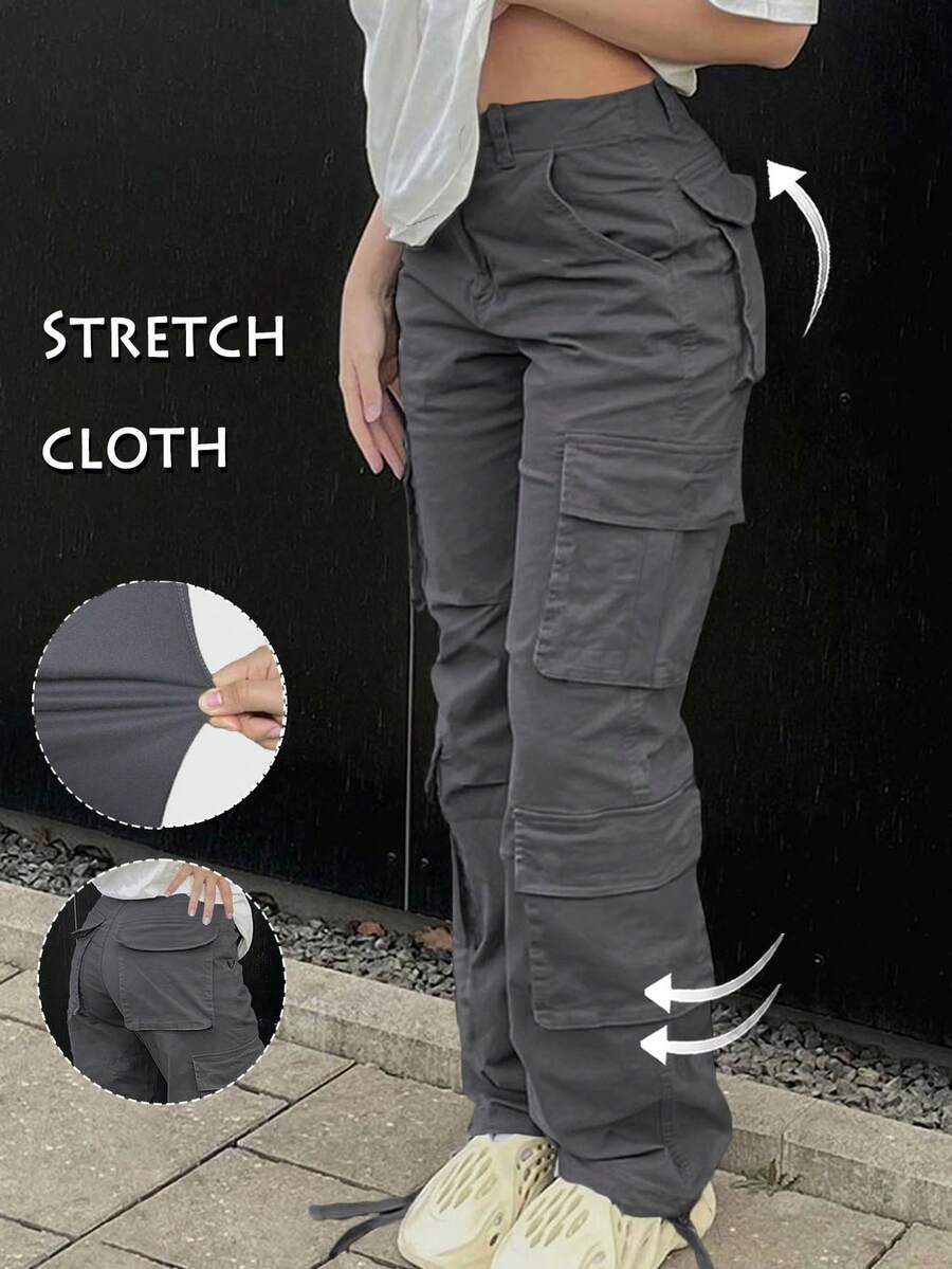 GILIPUR 女式工装裤弹力多口袋休闲 Y2K 风格黑色宽松裤返校街头服饰 2000 年代秋季服装复古服装风格外出服装