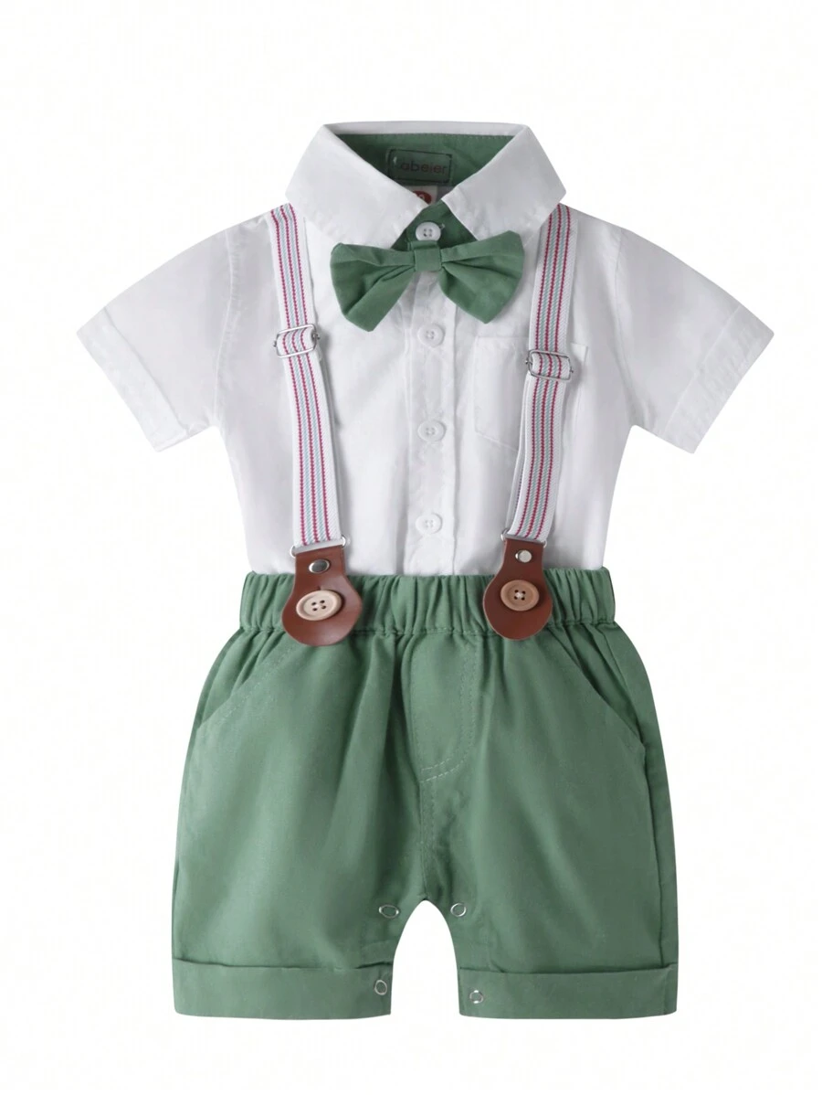 绅士风男婴纯色短袖连体衣套装,适合生日派对和夏季穿着