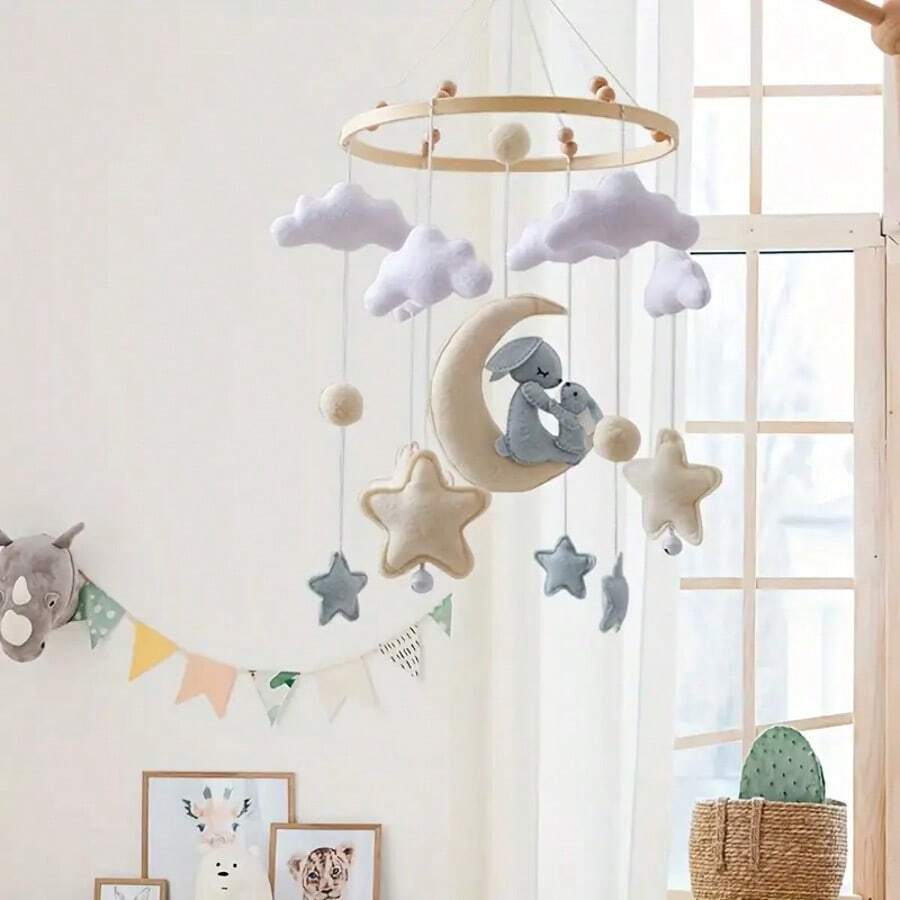 婴儿绵羊和星月床铃,手工制作的婴儿床摇铃,可爱的动物造型摇铃玩具,促进眼手协调能力发展,儿童房装饰,混合颜色,新生儿床铃玩具,亲子互动、生日、圣诞节的最佳礼物