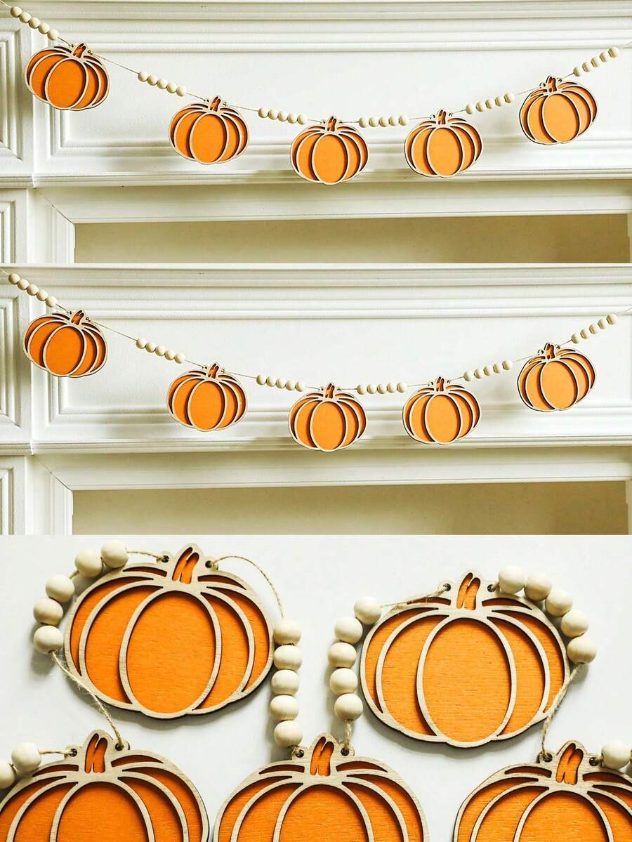 1 件万圣节南瓜花环 - 木制南瓜装饰、秋季家居装饰、万圣节派对装饰、乡村南瓜横幅、南瓜灯串、感恩节花环、秋季壁炉架装饰