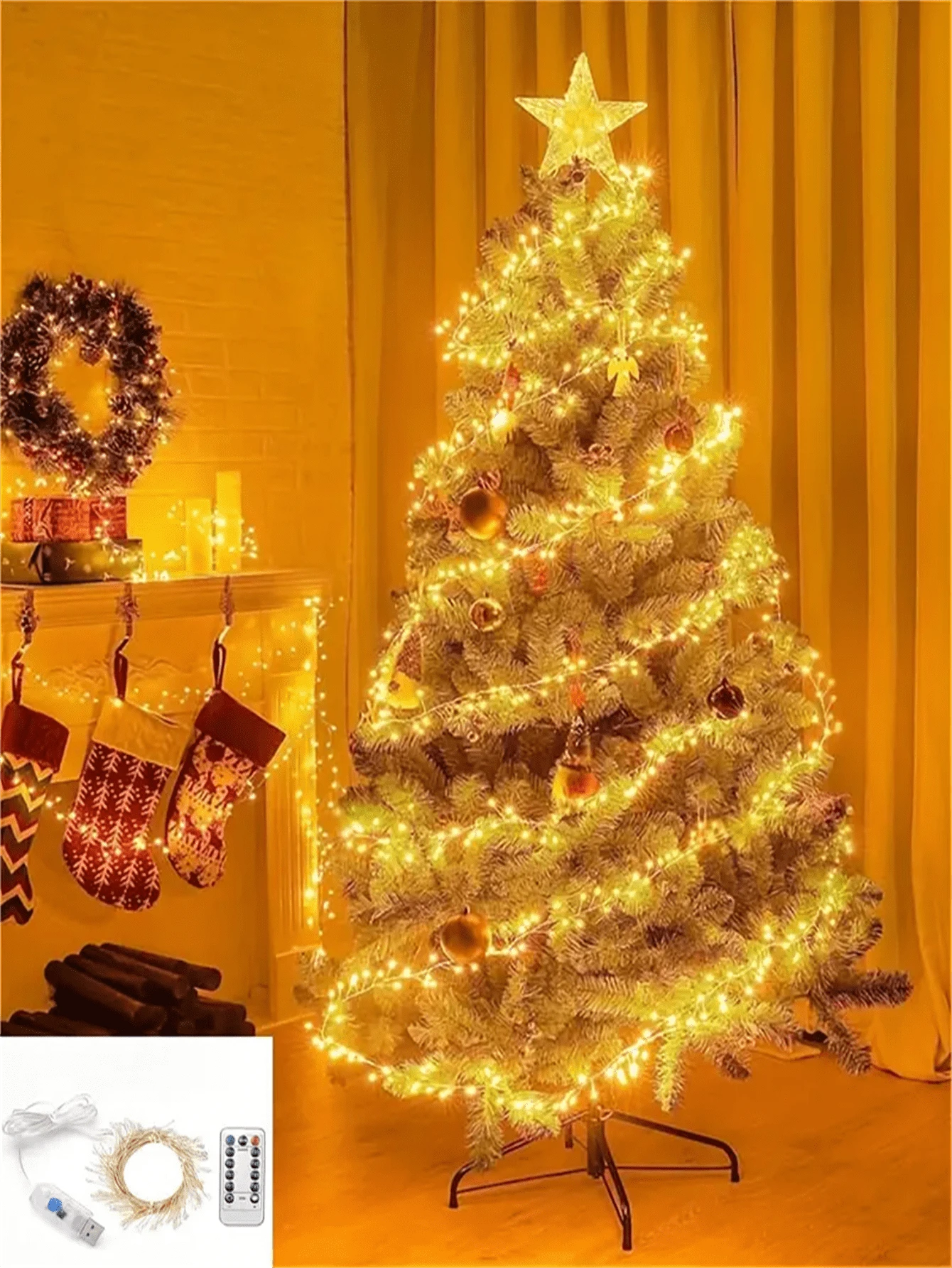 1 件 100/50 LED 爆竹灯,8 种闪烁模式,带遥控器的星星灯串,USB 电源,圣诞树装饰天花板,卧室窗户,婚礼暖白光