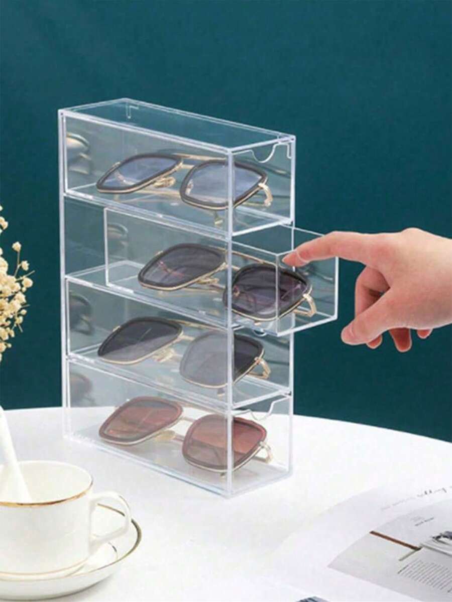 1 件亚克力多层抽屉整理盒,办公桌眼镜太阳镜抽屉隔板,带透明防尘盖,化妆品,口红,太阳镜收纳架,透明 4 隔间抽屉,咖啡胶囊,茶包,太阳镜收纳盒,送给女朋友、母亲、大学生、万圣节、新年的礼物
