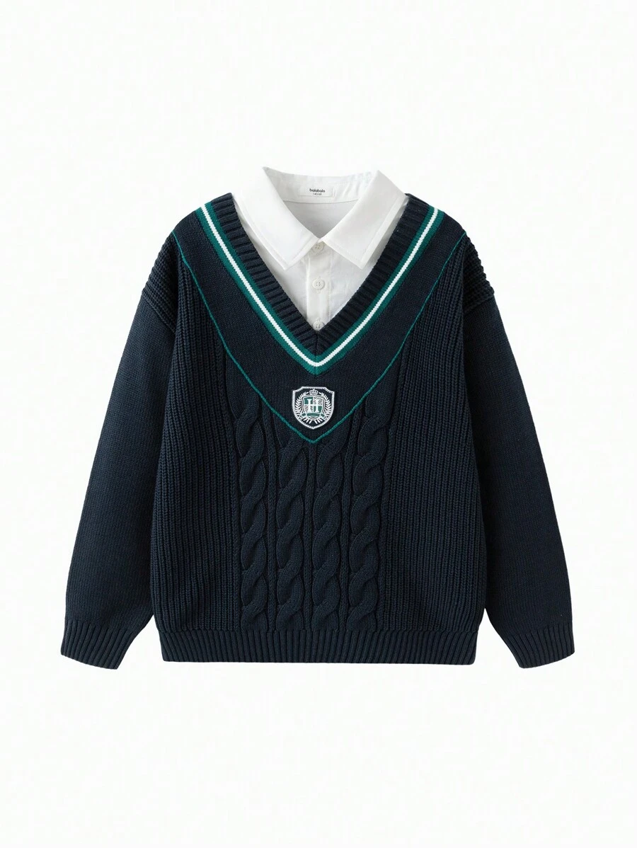 Balabala 青少年男童学院风撞色条纹针织毛衣