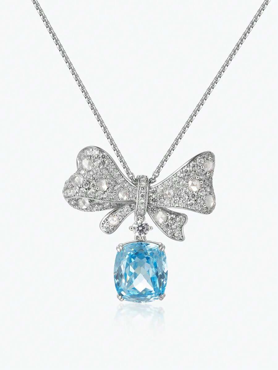 Dissoo 1 件经典优雅蝴蝶结浅蓝色锆石吊坠项链,925 银镀铂金,适合女士,配有礼品盒,适合婚礼、派对、海滩、节日、毕业典礼、伴侣礼物等场合