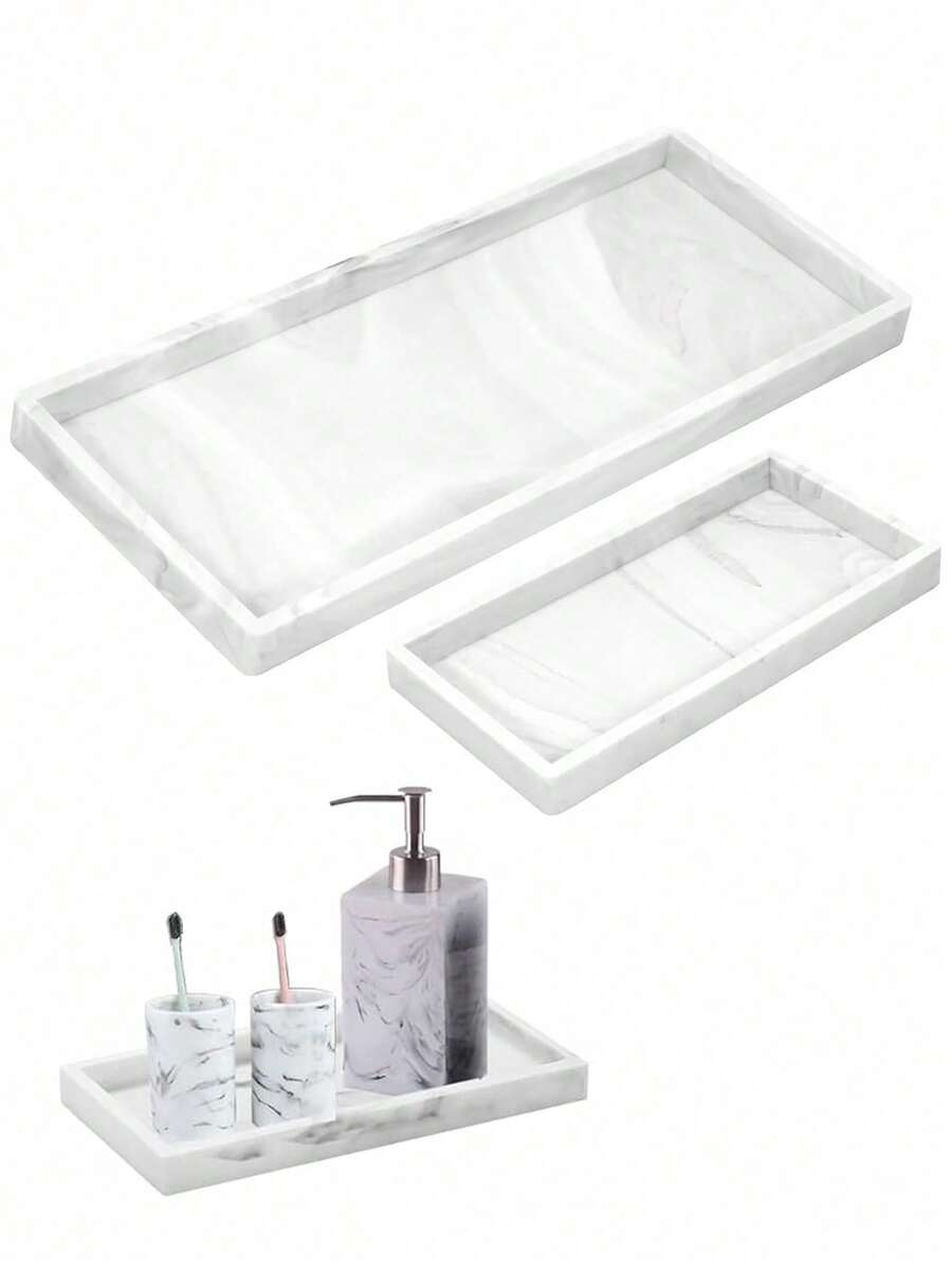 浴室托盘大理石板,2 件托盘浴室托盘大理石托盘硅胶制成,白色大理石纹理,适用于浴室、浴缸厨房水槽和浴室硅胶托盘