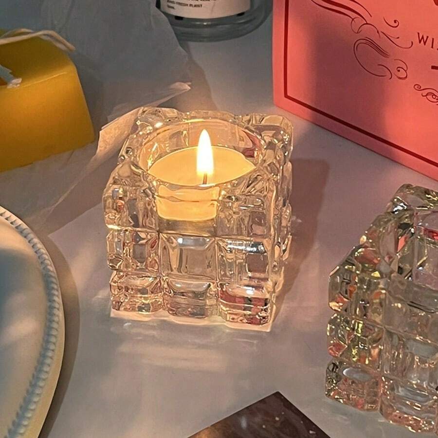 1 件多功能玻璃蜡烛装饰品,适合家庭使用,适合餐桌。透明水晶蜡烛,非常适合在欧式婚礼场景中营造浪漫氛围。