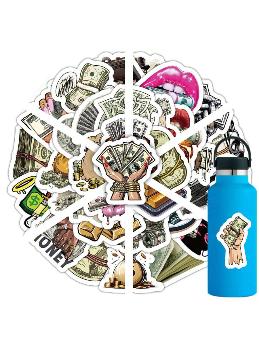 每包 50 张(大尺寸,新包装)斯堪的纳维亚风格 Money World 涂鸦贴纸,防水贴纸,适用于行李、笔记本电脑、自行车、摩托车、文具、踏板车、家具、冰箱、手机、马克杯、头盔、汽车等!