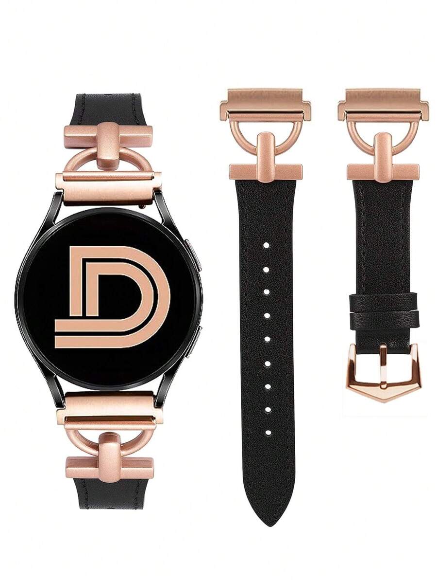 20mm/22mm金屬D形扣黑色皮革手錶帶,快速釋放表帶,適用於Samsung Galaxy Watch 6/5/4 Active2 40mm 44mm/Watch 6 Classic 43mm 47mm/Watch 5 Pro 45mm/Watch 4 42mm 46mm/Watch 3 41mm手錶