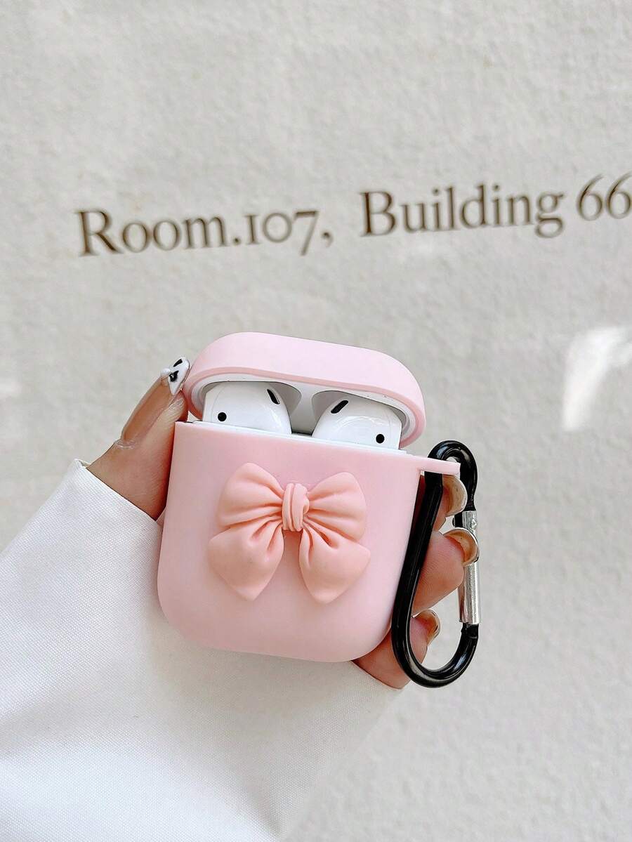 蝴蝶结耳机盒,带 1 个耳机挂钩支架,哑光粉色蓝牙耳机盒,兼容 Apple、Pro 3、4