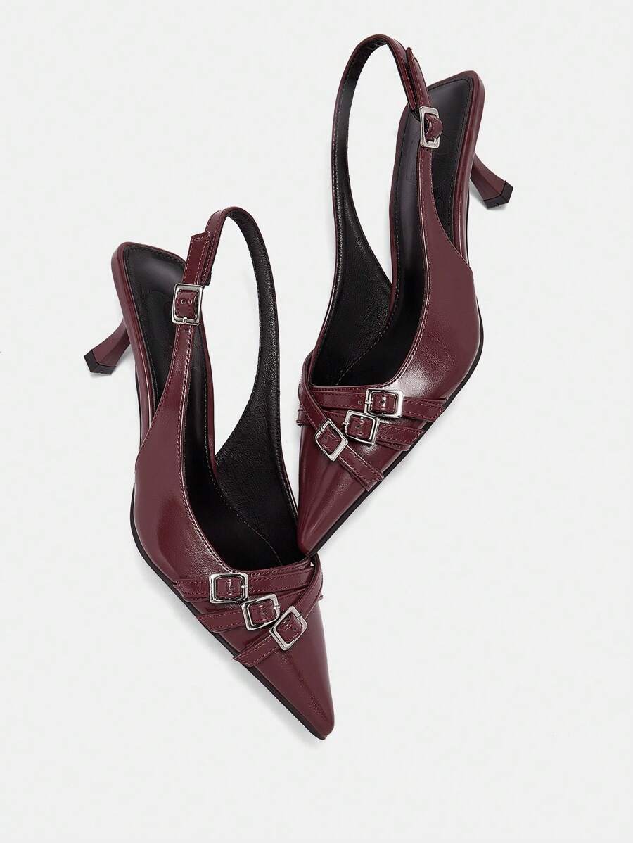 CUCCOO BIZCHIC 尖头细高跟豹纹女鞋,酒红色,春季鞋款,春假复活节