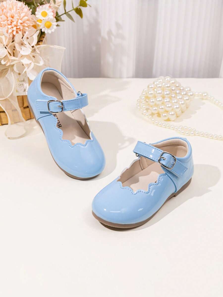 女童可爱扇贝边玛丽珍公主芭蕾平底鞋,纯色