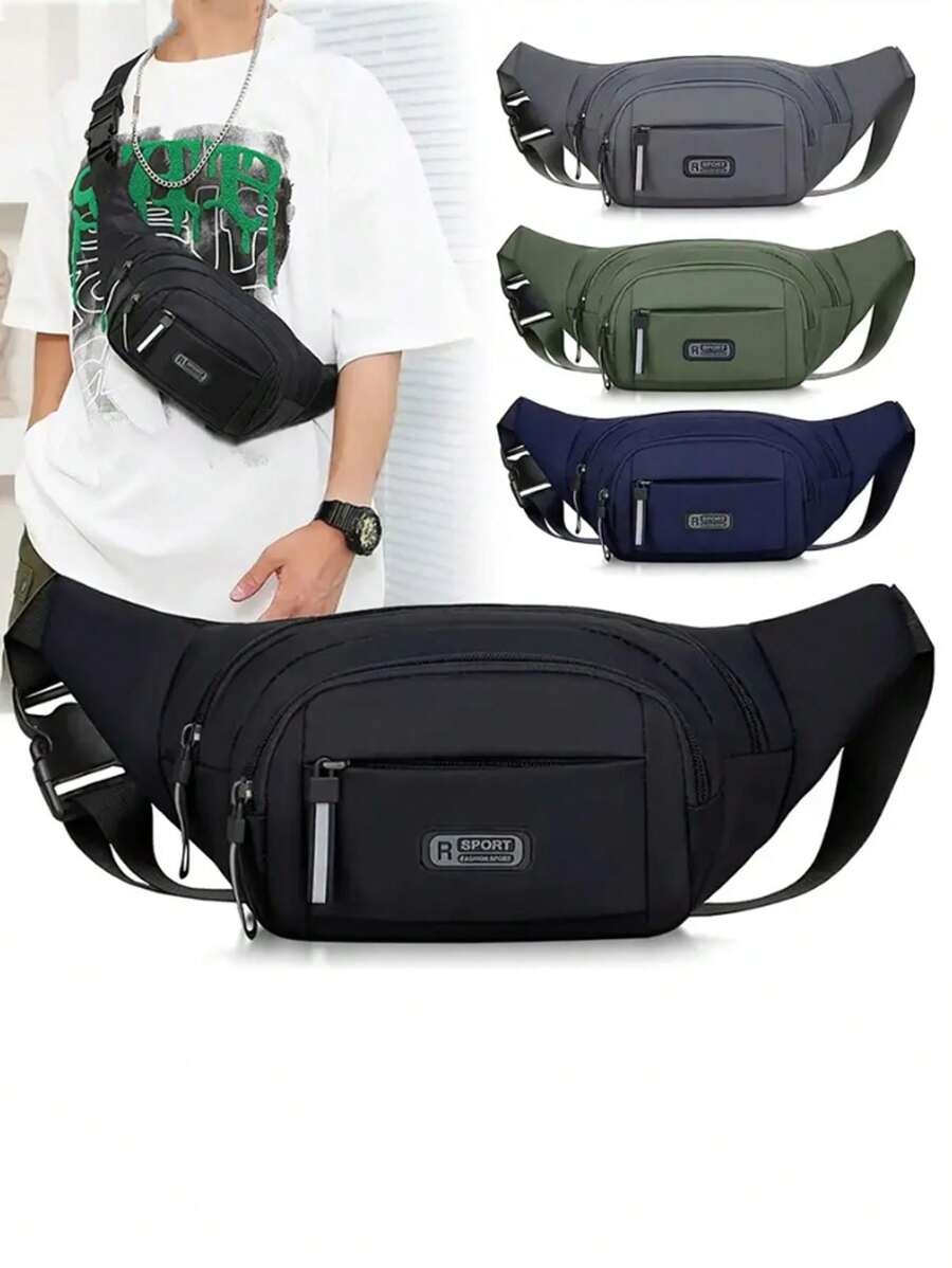 1个【超薄尼龙腰包】超薄尼龙男士腰包 | 轻便防盗斜挎包,适合运动、户外探险和都市旅行。大容量多功能腰包 - 运动腰包,配有可调节肩带、多个拉链口袋,可存放手机、钥匙、现金和必需品,黑色,多功能腰包,拉链封口。
