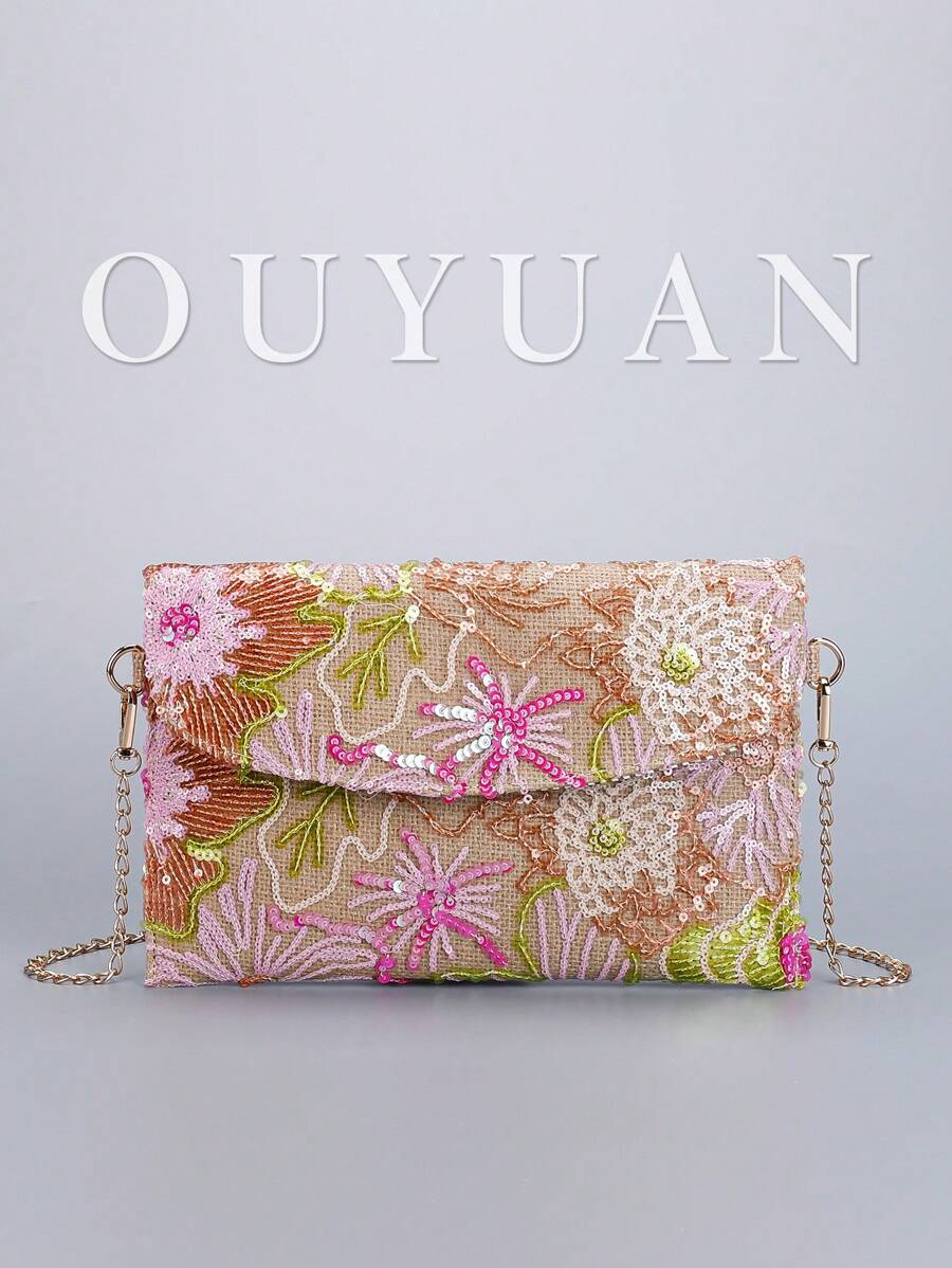 亮片刺绣信封包,女士时尚亮片拼布翻盖钱包,亮片拼布刺绣晚宴包,撞色条纹拼布随机刺绣手拿包,适合女士购物、旅游、聚会、送礼