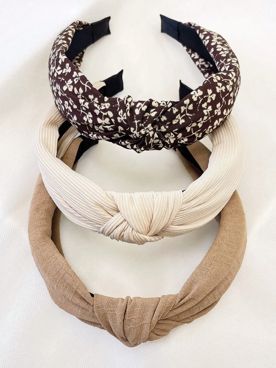 3件套女士简约花卉纯色布艺发带,户外/日常佩戴发饰,发箍,发圈头饰