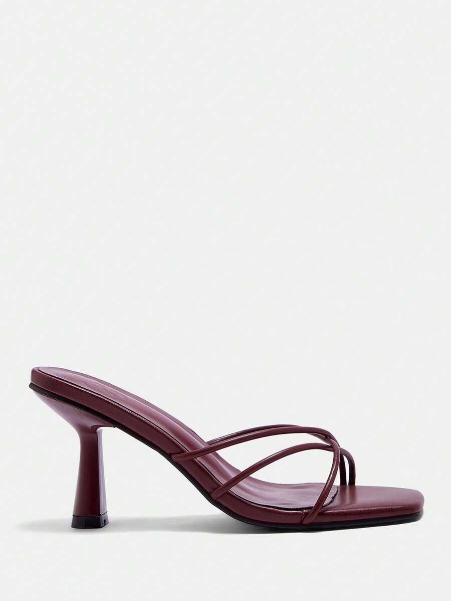 SHEIN X Belle Mariano CUCCOO SZL 时尚低跟系带凉鞋圣诞秋季勃艮第高跟凉鞋新年假期