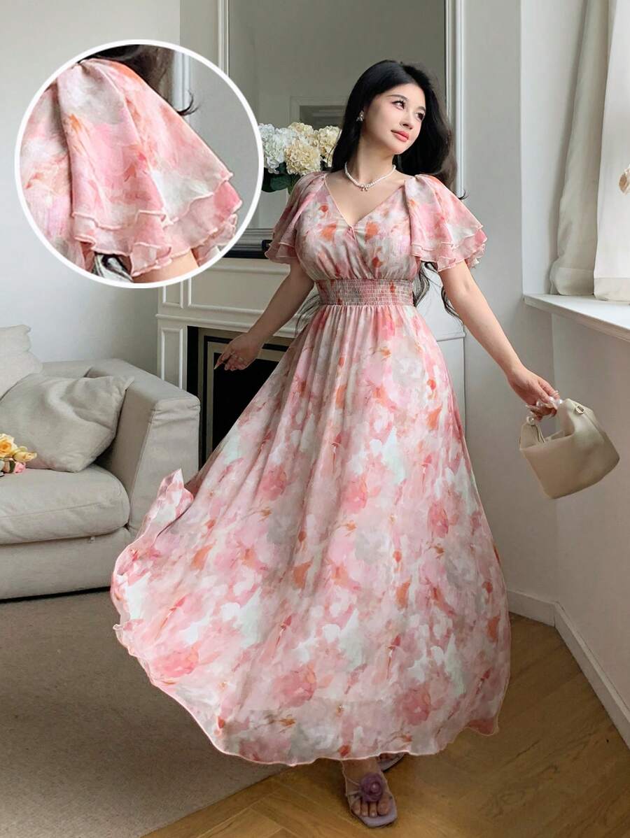 Modelyn 女士优雅花卉印花连衣裙,夏季