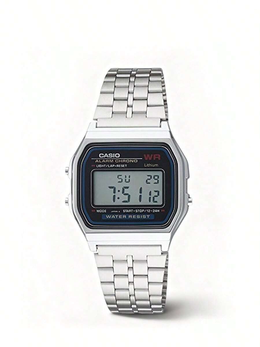 Casio 男士经典休闲运动风腕表。不锈钢表带,休闲运动风格,适合日常佩戴。数字时间显示。A159W-N1,新年和圣诞节礼物。