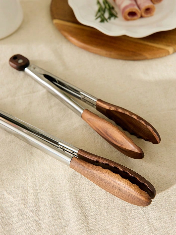Cirelle 木制厨房烹饪钳,带木制尖头的厨房烹饪钳,不锈钢防滑核桃沙拉钳,烧烤钳