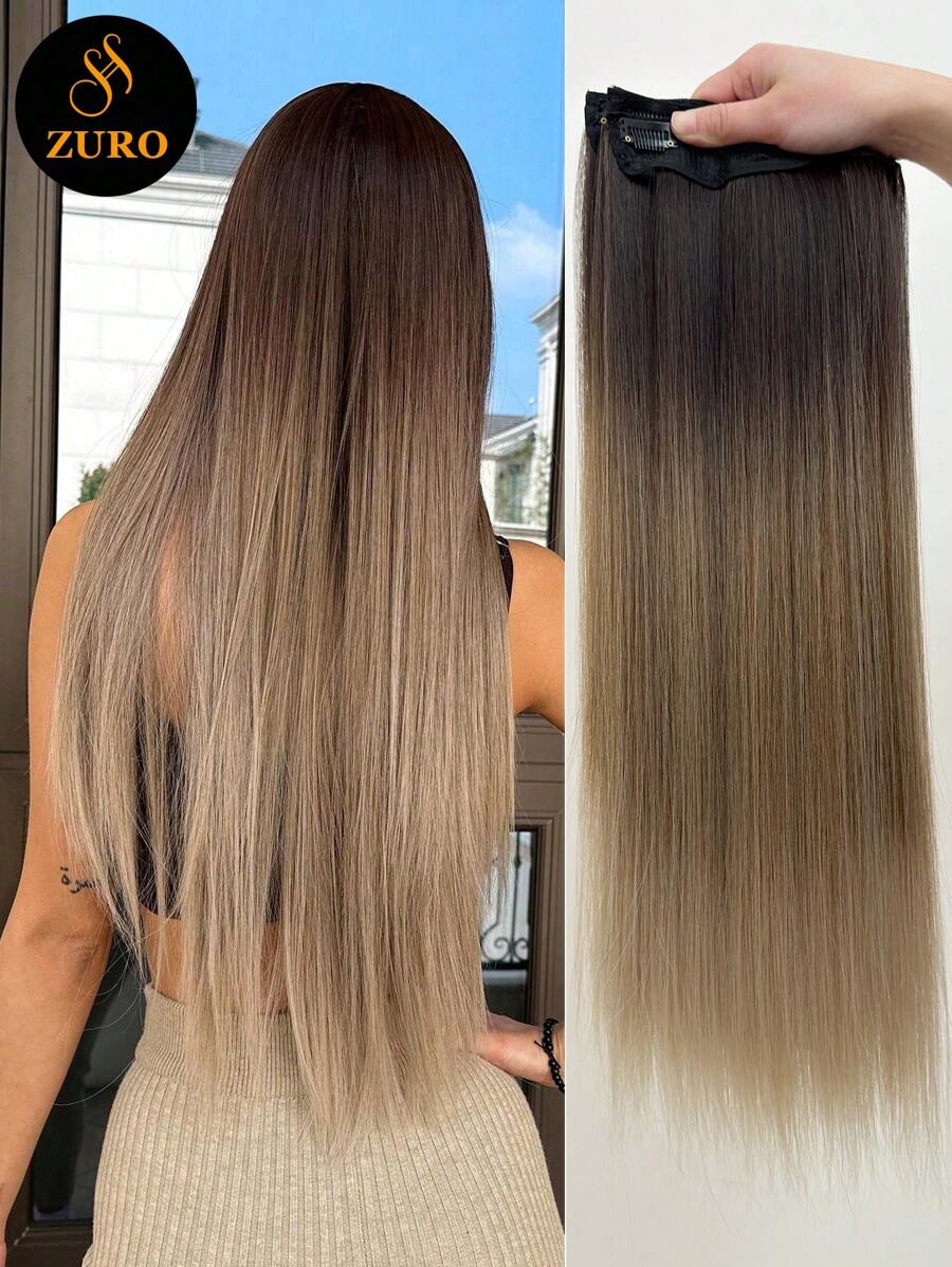 3片装22-24英寸渐变色夹式接发片,长直合成接发片,适合女性和女孩日常使用