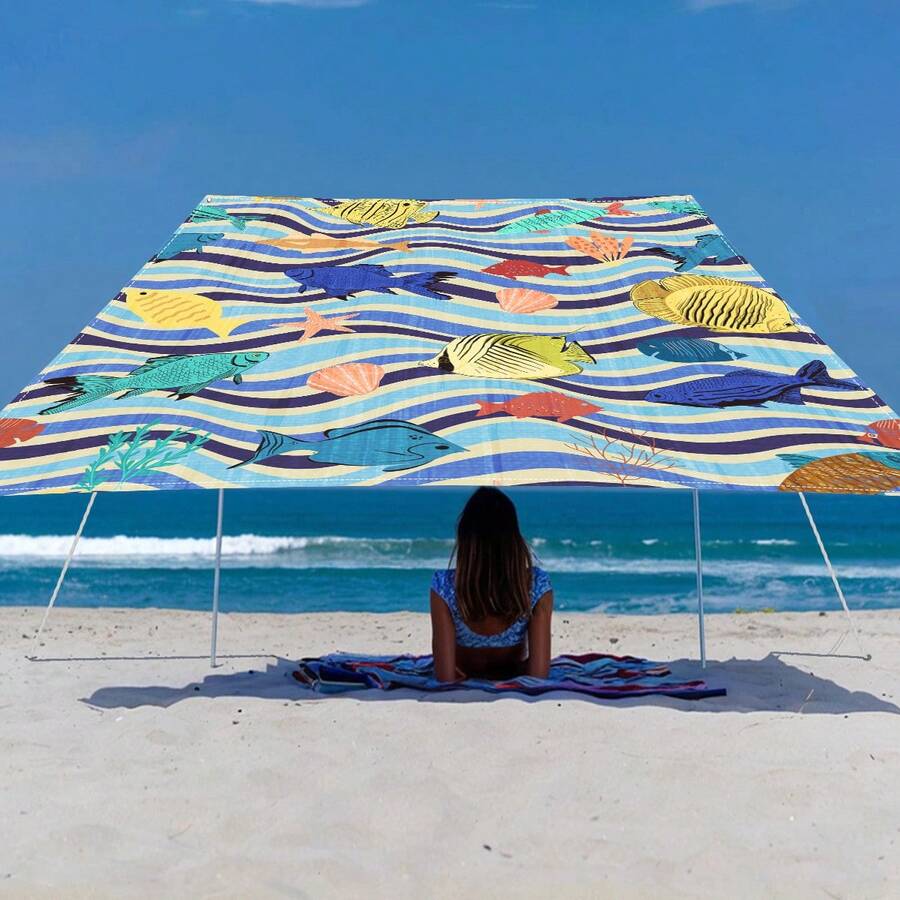 • 1 件海洋生物设计遮阳篷,轻松打造舒适休闲区,卡通海洋风格,100% 涤纶,矩形,防水,防紫外线,适用于户外花园、露台、海滩、夏季,附赠尼龙绳 - 彩色 - 查看 7