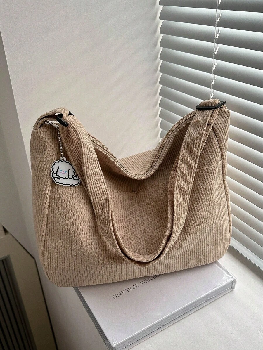 灯芯绒休闲风百搭日式文艺单肩斜挎包时尚学生休闲韩版女简约饺子包