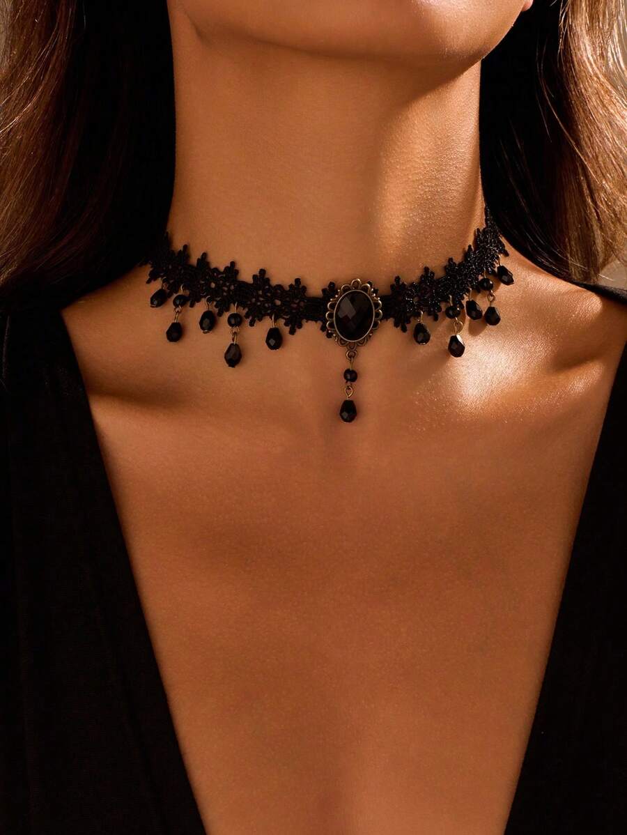 Cuiwrgrs 1件哥特风蕾丝颈链,复古项圈项链,情人节配饰