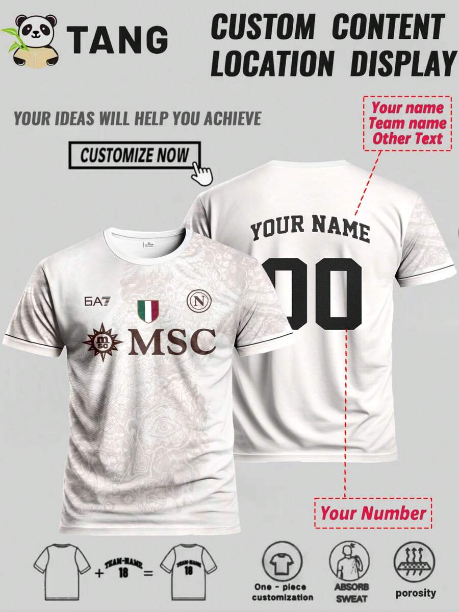定制那不勒斯风格男士足球球衣,可印制姓名和号码,舒适圆领运动衫,适合足球训练、休闲穿着和作为礼物