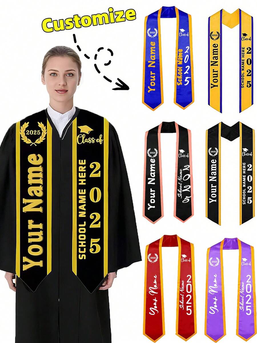 可定制涤纶毕业典礼,2025 届,轻巧的学术仪式,印有“您的名字”和“UNO”,非常适合毕业典礼、正式活动和特殊场合,正式配饰 | 可定制毕业典礼 | 耐用面料,教师礼物/返校/高中毕业生礼物/大学/高中必备/男孩和女孩返校/毕业季必备礼物
