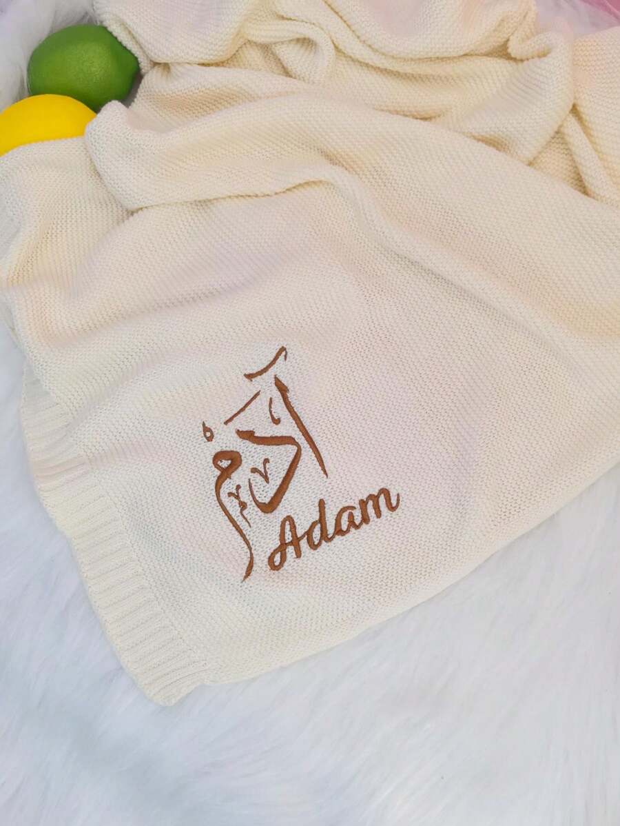 定制刺绣名字婴儿毯,柔软针织毯,米色、粉色、绿色、蓝色、浅粉色可选,尺寸100cm*80cm,适用于婴儿推车,新生儿礼物,新生儿纪念品,多功能,装饰性强,字母刺绣,时尚现代,色彩缤纷,可爱迷人,休闲百搭,可定制,个性化,独一无二,送给他的理想礼物,送给她的理想礼物,送给儿子,送给女儿,圣诞礼物