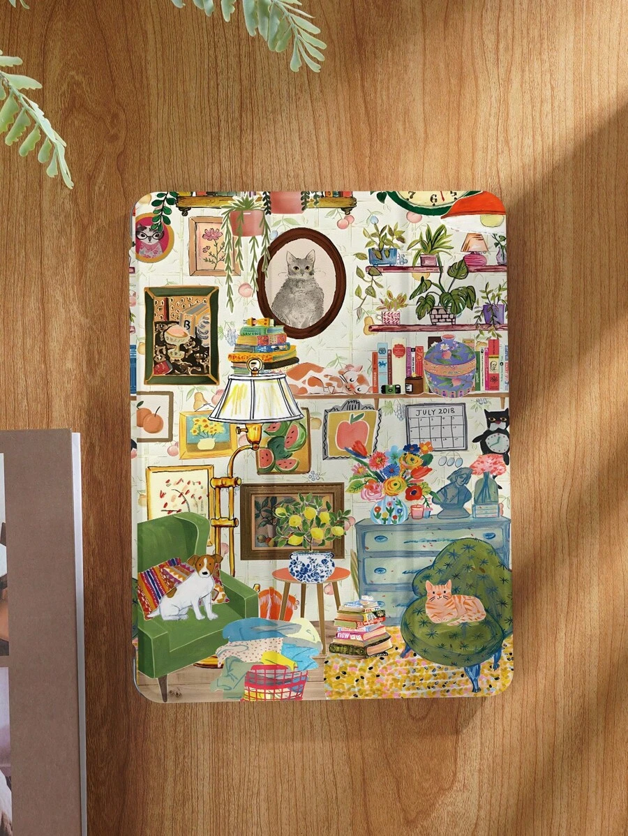 可爱动物图案平板电脑保护套,兼容 iPad 9.7/10.2/10.5/10.9/12.9/Pro 11(第十代)、Galaxy Tab S6 Lite 10.4、Kindle Paperwhite(第十二代,2024 年发布)、Kindle(第十一代,2022 年发布),柔软防震,带智能支架/自动唤醒/睡眠功能