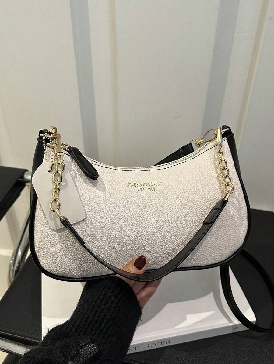 全新时尚经典百搭 PU 防水材料字母图形金属链条装饰法式斜挎包,适合购物